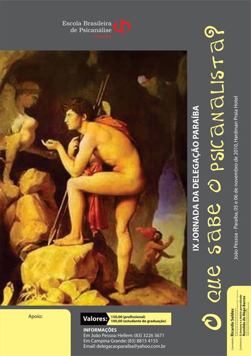 Procura-se cartelAos que têm interesse na investigação de um tema particular e pelo dispositivo do cartel, que possam declarar sua intenção enviando um email para cassandradias@uol.com.br para divulgação na coluna “Procura-se cartel” . Quando quatro pessoas estiverem reunidas em torno de um tema comum, o cartel estará constituído. Temos dois temas de interesse que aguardam novas inscrições: Leituras de Freud e o seminário 10 de Lacan A angústia. Leituras de Freud A angústia – seminário 10 – Jacques Lacan EVENTOS DPB V Encontro Americano de Psicanálise de Orientação Lacaniana – ENAPOL Endereços das sedes: |